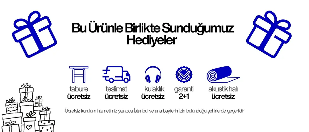 Cutting-edge teknolojisi sayesinde dış seslerden tamamen bağımsız olarak kulaklık veya Bluetooth cihazları kullanabilir, dilediğiniz ortamda özgürce çalmaya devam edebilirsiniz. Bu yapı, ev ortamında uzun süreli ve konforlu pratikler için ideal bir deneyim sunar.